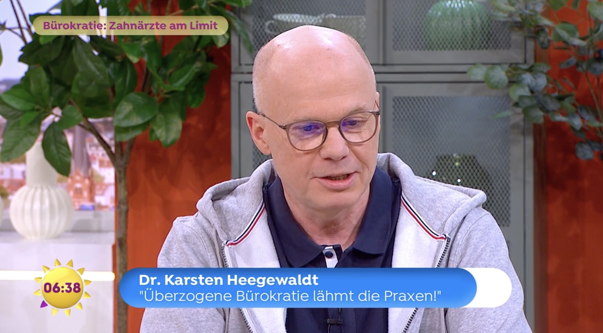 Die Regelungs-Wut der Regierung greift immer mehr um sich. Schon jetzt verbringen Zahnärzte ein Viertel ihrer Zeit mit dem Ausfüllen von Listen und Formularen. Sehen Sie dazu einen Beitrag des Berliner Vorsitzenden der Zann ärztekammer, Dr. Karsten Hegewaldt im Sat1 Frühstücksfernsehen.